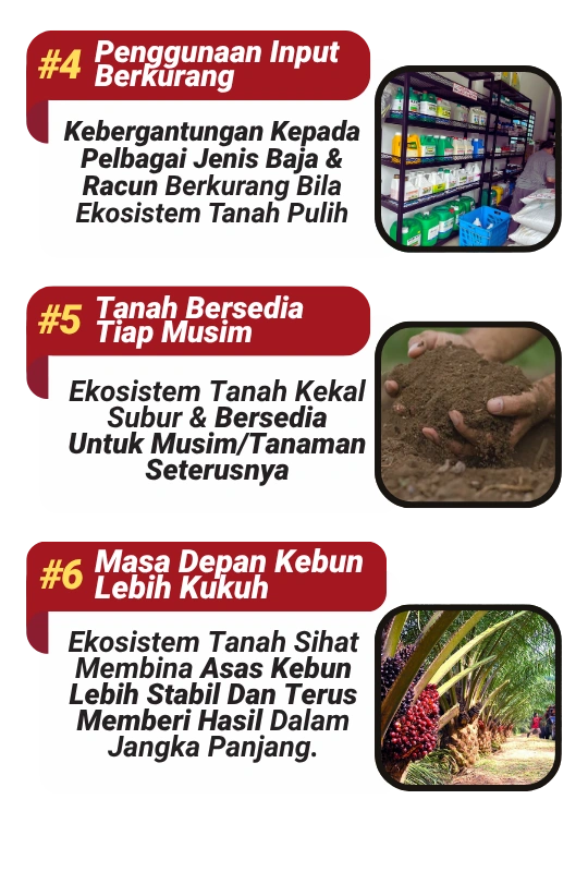 ➡ Mengaktifkan ekosistem tanah, tingkatkan serapan nutrien, dan galakkan pertumbuhan akar yang sihat.