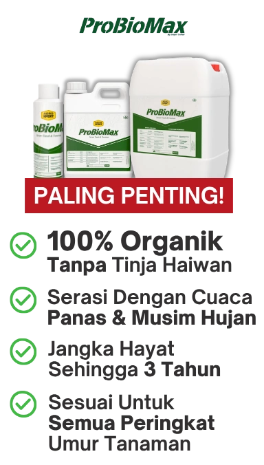 ProBioMax: Kesan stabil 1 musim ke atas (jika tanah konsisten dirawat).